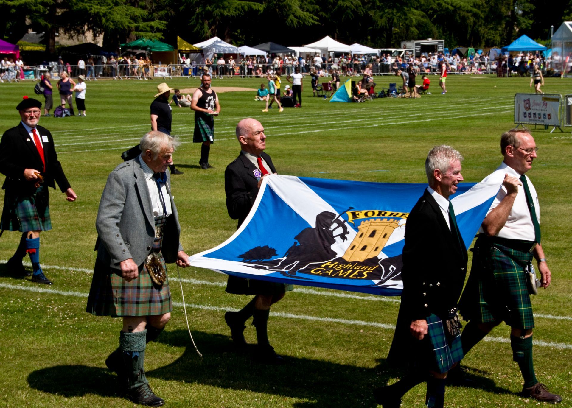 The Games were officially opened after the Forres & District Pipe Band paraded from the centre of Forres into the main arena where the official Games flag was raised.